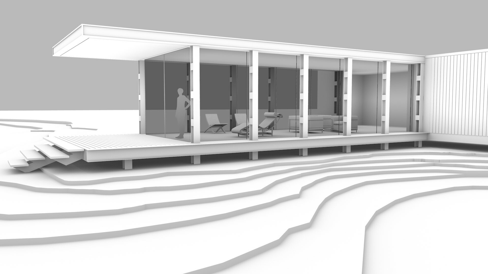 In previous releases, the ‘chalk’ render mode would make all objects appear white and opaque. In this release, there is a new ‘Transparent glass’ option when chalk mode is active, which makes most transparent objects render in their non-chalk mode. This can make form and massing studies more intuitive when large areas of transparency are used.